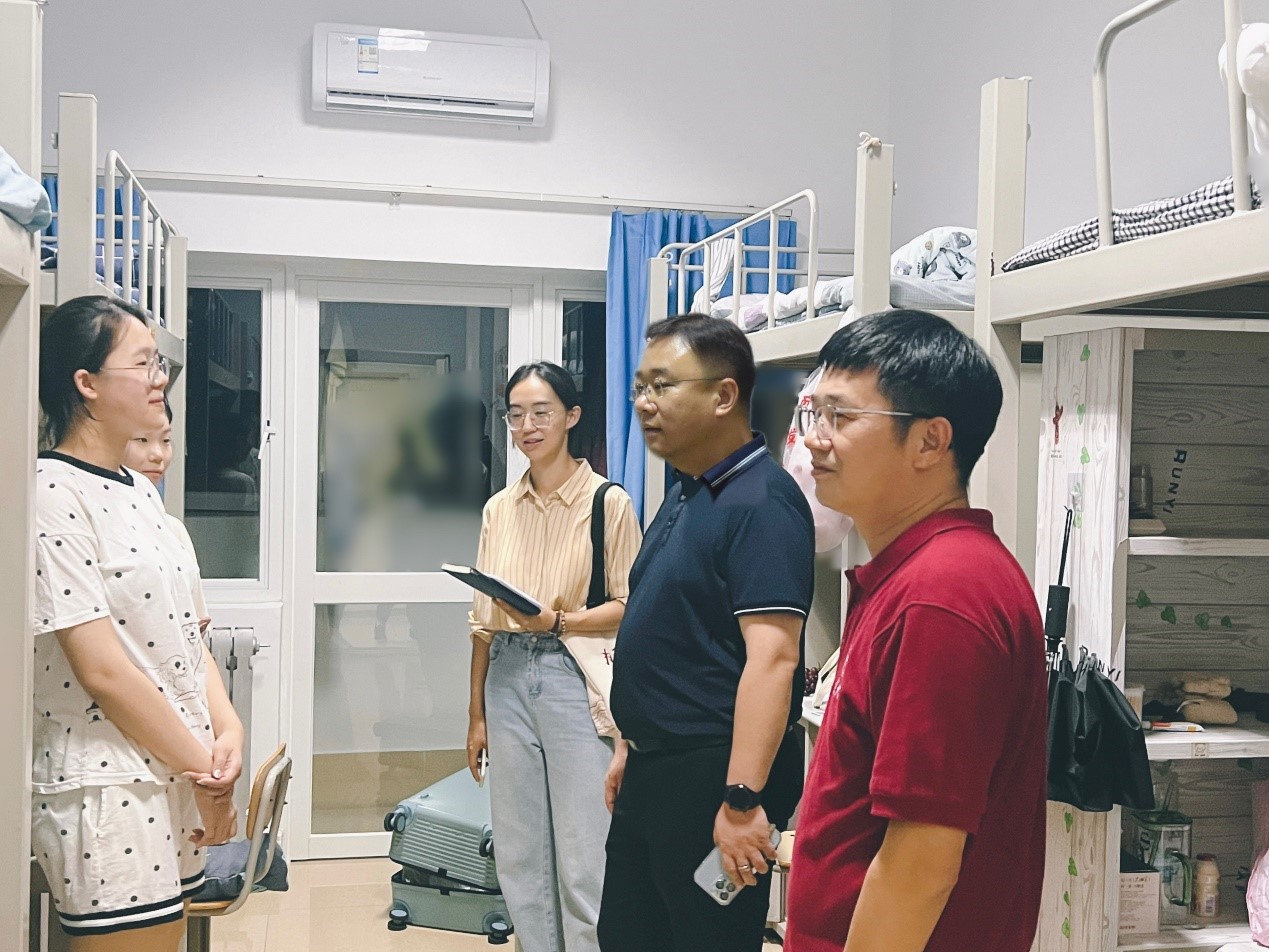 本站讯 9月5日晚,万博MAX体育官网党委书记魏斌、副书记周玉宏,副院长周新顺、尹海良等,和全体辅导员来到2023级新生宿舍开展了走访活动。