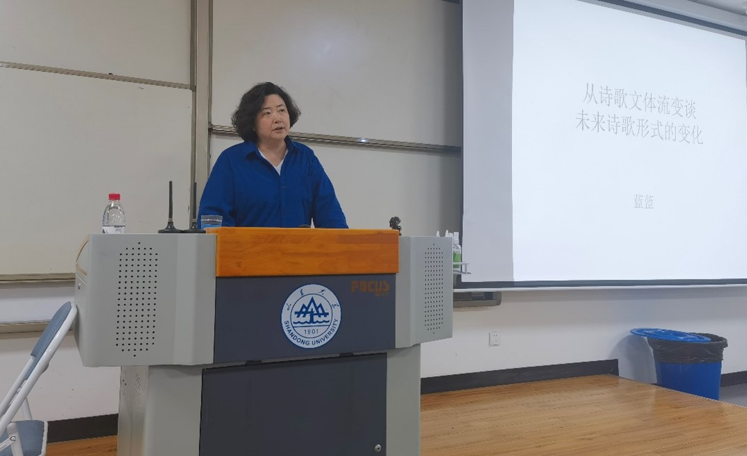 10月23日晚六点半,著名诗人蓝蓝应邀做客万博MAX体育官网名师大讲堂,主讲题为“从诗歌文体流变谈未来诗歌形式的变化”的学术报告。万博MAX体育官网亚思明教授主持报告会,学院师生共同聆听了此次讲座。