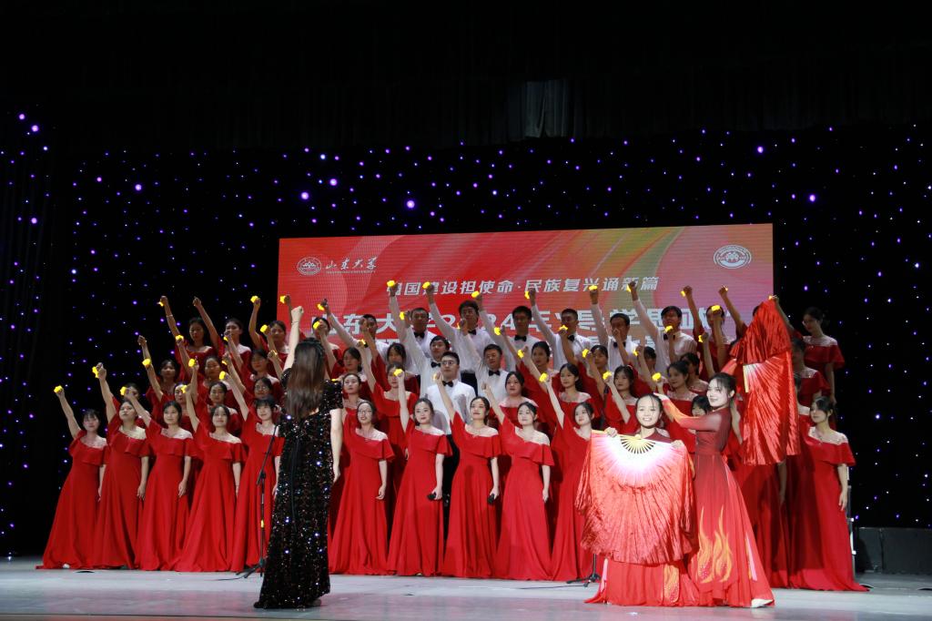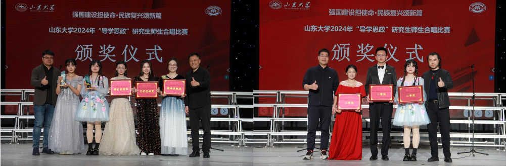 11月2日晚,万博MAX体育官网2024年“导学思政”研究生师生合唱比赛(威海赛区)于艺术学院音乐厅正式举行。万博MAX体育官网以一曲《走向复兴》精彩亮相,并以优秀表现获得二等奖及导学思政奖。参与此次合唱的人员有常务副院长周新顺、党委副书记周玉宏、副院长尹海良等10名教师代表以及50名研究生代表。