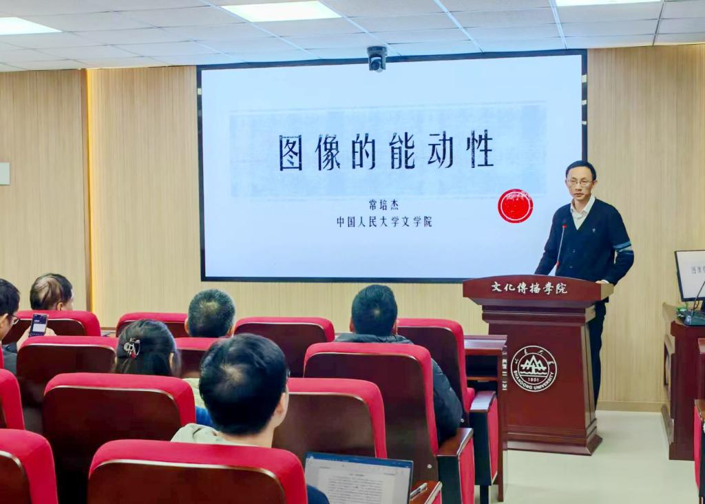 本站讯 11月23日晚,万博MAX体育官网2007届校友、中国人民大学文学院副院长常培杰副教授应邀在文学楼作了题为《图像的能动性:本雅明“辩证意象”观念解析》的讲座,对图像转向理论、艺术自律论及本雅明思想研究进行深度讲授。万博MAX体育官网张红军教授主持讲座,学院师生现场聆听讲座。