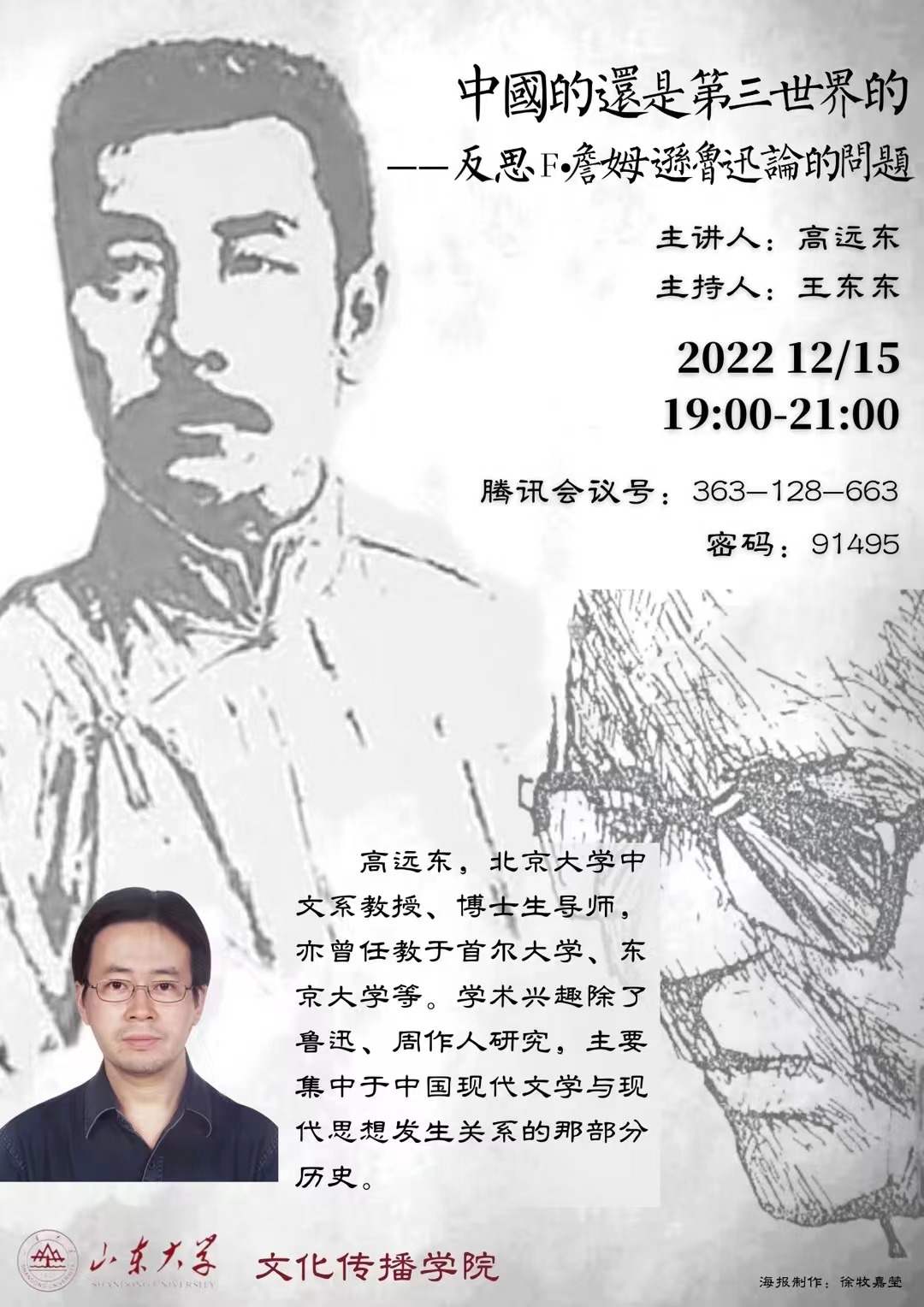 高远东,北京大学中文系教授、博士生导师,亦曾在首尔大学、东京大学等任教。学术兴趣除了鲁迅、周作人研究,主要集中于中国现代文学与现代思想发生关系的那部分历史。