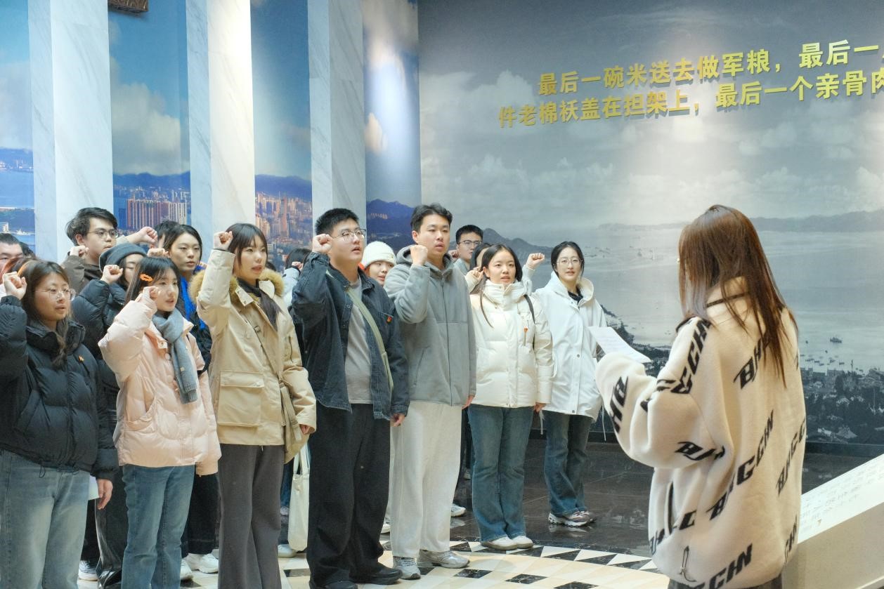 活动最后,三个学院研究生党支部联合开展了一堂别开生面的红色微党课。结合不同学院的学科特色,万博MAX体育官网研究生党支部围绕党的二十届四中全会精神有关“推动文化建设数智化赋能、信息化转型”等重要论述,介绍了使用融媒体、短视频等形式创新红色文化传播路径的实践方案;纪检监察学院研究生党支部以“以严明纪律淬炼坚强党性”为题,讲解了如何从革命历史中深刻把握全面从严治党的政治要求,自觉在学习科研和日常生活中守住廉洁自律底线;海洋学院研究生党支部围绕“赓续红色基因,投身海洋强国”主题,分享了新时代青年科研工作者在海洋强国建设中的使命担当。全体党员纷纷表示要赓续革命精神、传承红色基因,并面向党旗庄严宣誓,重温入党誓词,在鲜红党旗的见证下进一步校准理想信念,以初心照亮前行的道路。