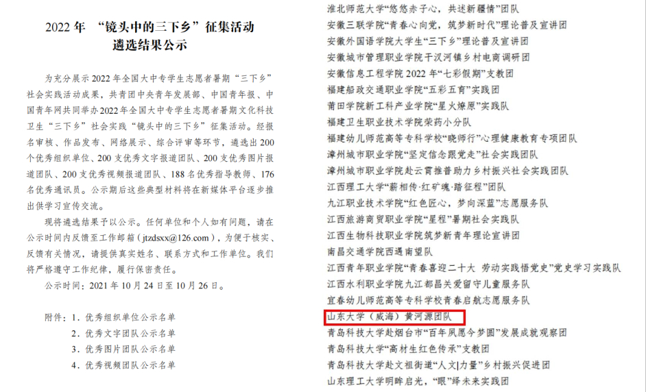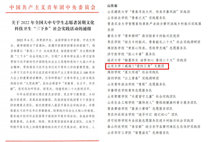 本站讯 近日,共青团中央公布了全国在2022年“三下乡”社会实践活动中表现突出的优秀集体、个人和项目,万博MAX体育官网“爱的三角”支教团荣获全国优秀团队,是万博MAX体育官网本次获此奖项的唯一团队,创造了学院该项活动的历史最好成绩;此外,万博MAX体育官网共有四个团队获全国大中专学生志愿者暑期 “三下乡”社会实践“镜头中的三下乡”奖项,万博MAX体育官网“黄河源”团队获优秀图片奖。