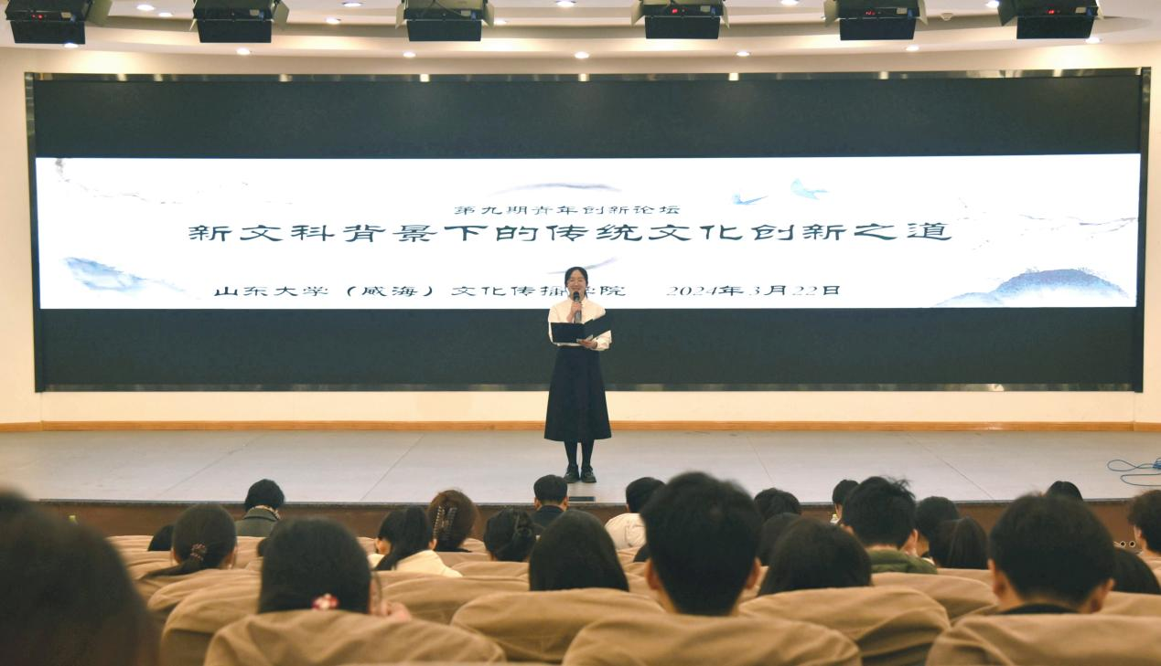 本站讯 3月22日下午,由校区团工委主办、万博MAX体育官网团委承办的第九期青年创新论坛在玲珑学堂举行。本次论坛以“新文科背景下的传统文化创新之道”为主题,万博MAX体育官网副教授朱新林、山东融媒文化传媒有限公司总经理兼万博MAX体育官网业界导师张利然、万博MAX体育官网学生刘芊蔚、诸昱辰作为参会嘉宾到场分享相关经验,活动由万博MAX体育官网2022级本科生向余主持,学院辅导员白孟灵和部分同学参与本次论坛。