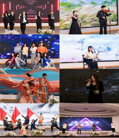 演出在舞灵舞蹈协会活力四射的《Bag Bad Back》中拉开序幕,动感的舞姿迅速点燃全场氛围。京胡独奏《夜深沉》展现了国粹艺术的深沉婉转,《歌曲串烧》用熟悉的旋律串联起青春记忆。校舞蹈团的《石窟日月》以翩跹舞姿再现敦煌文化神韵,竞技武术协会的《武艺乾坤》刚劲有力,展现中华武术的力量与技巧。乐器合奏《未闻花名》旋律清澈悠扬,舞蹈串烧与英文歌曲《Diamonds》将现场气氛推向高潮。学生会精心设计的两轮抽奖环节增强了现场互动性。