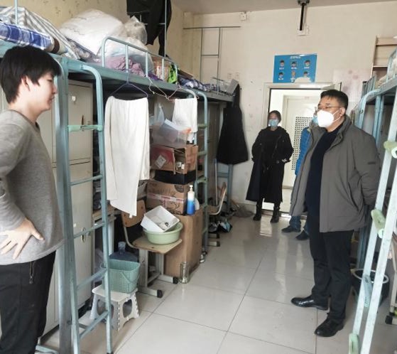 本站讯 为及时了解校园疫情防控期间学院学生的线上学习质量、校园生活情况和心理思想状况,4月1日上午,万博MAX体育官网党委书记魏斌、副书记周玉宏和辅导员开展了重点学生宿舍走访工作。